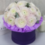 17 белых ранункулюсов в шляпной коробке в Белгороде
