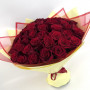 На фото букет из 51 бордовой розы. В составе: роза 51 шт, фоамиран 3 шт, атласная лента 1 шт, . Все цветы свежие и ароматные, букет красиво оформлен и отлично подходит для подарка. Доступна доставка цветов или самовывоз.