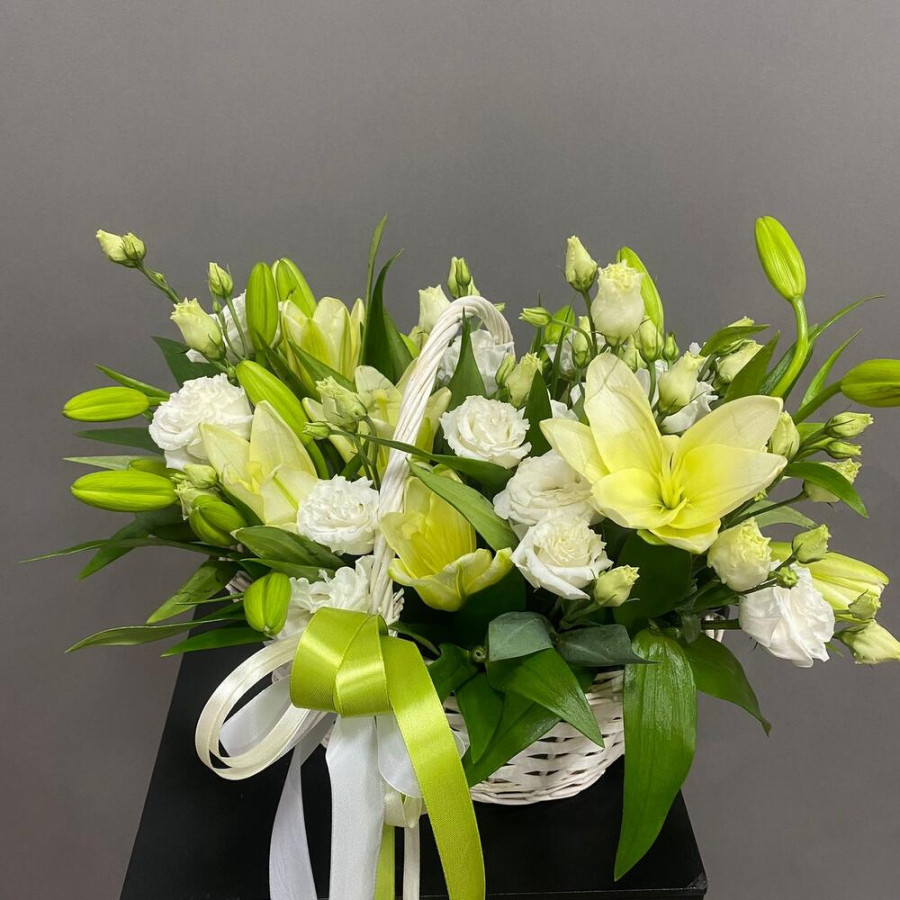 Корзина с белыми лилиями и эустомами в Белгороде